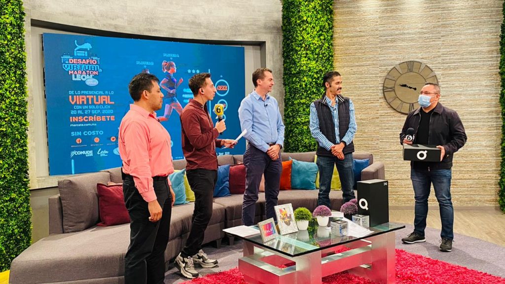 Durante la transmisión en vivo del programa Vivelavi, del Canal 6, Roberto Elías, titular de la Comisión Municipal de Cultura Física y Deporte de León (Comude León), Julián Villarreal, director de negocios de Multimedios y Diego López, representante del Grupo Guiar, patrocinador oficial del Desafío Virtual Maratón León Guiar 2020, recibieron a los ganadores y les hicieron entrega de sus regalos.