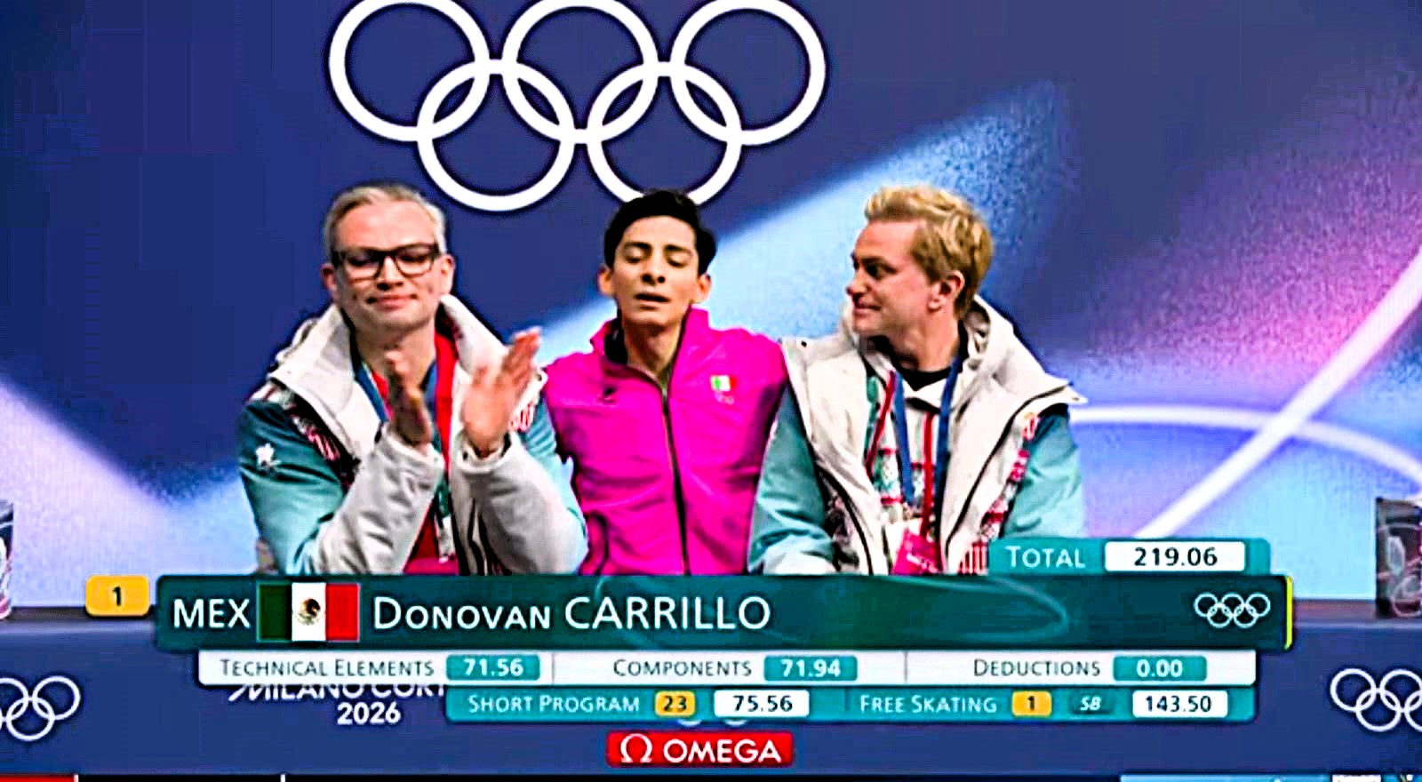 El silencio en el Milano Cortina se rompió con una explosión de aplausos. Donovan Carrillo acababa de completar la rutina más brillante de su carrera y su reacción fue visceral: se dejó caer sobre el hielo y lo besó con una intensidad que solo pueden entender quienes han perseguido un sueño durante décadas. Ese beso no fue casualidad ni dramatismo calculado. Fue la descarga emocional de un atleta que acaba de alcanzar la perfección en el momento más importante.