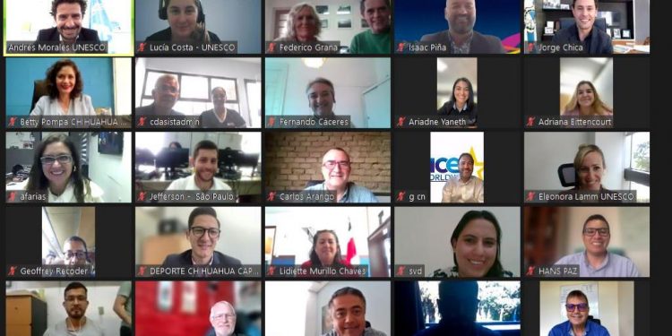 Este miércoles 24 de mayo se realizó la segunda Reunión de trabajo de manera virtual con la participación de las Secretarías y Direcciones del Deporte, 17 municipalidades de nueve países latinoamericanos entre los que se encuentran Argentina, Brasil, Chile, Colombia, Costa Rica, Ecuador, México, Perú y Uruguay; la Asociación de Ciudades del Deporte en Europa y América (ACES Europa y ACES América), de la Agencia de Cooperación para el Desarrollo Sustentable (GIZ), además del CODE Guanajuato y del Gobierno de Baja California.