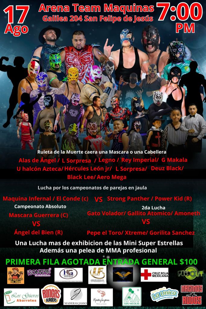 El evento principal será una emocionante «ruleta de la muerte» donde caerá una máscara o una cabellera. En esta lucha super estelar participarán reconocidos gladiadores como Alas de Ángel, Legno, Rey Imperial, G Makala, Último Alcón Azteca, Hércules León Junior, Deus Black, Black Lee y Aero Mega, además de dos luchadores sorpresa que mantendrán la expectativa hasta el último momento.