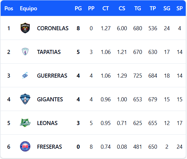 Por su parte, las Freseras de Irapuato siguen en un paso ‘empantanado’ y ya suman ocho derrotas de inicio en la temporada, todavía sin conocer la victoria. Esta semana tuvieron la aduana más difícil al visitar a las líderes Coronelas de Durango.
